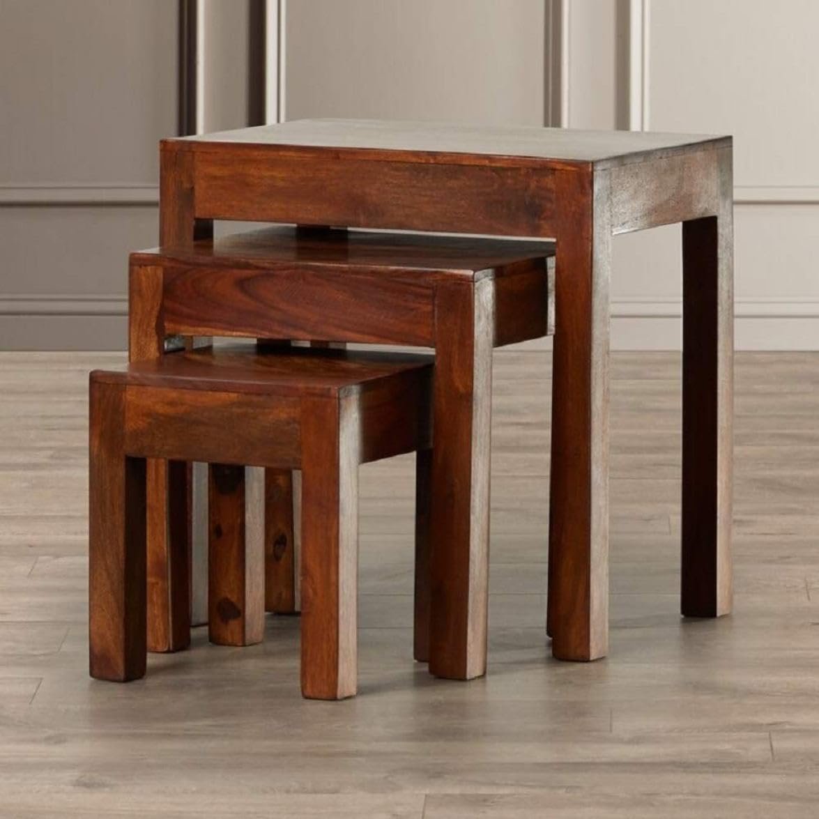 Solid Sheesham Wood Nesting Table Set of 3 Stools Bedside Table Sofa Side Table Nightstand End Table for Living Room Bedroom Home Office Wooden Furniture (Brown Finish)