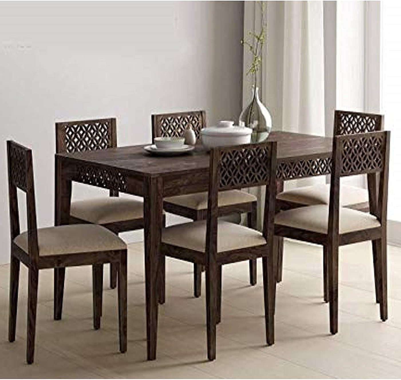 Be the first to review “SONA ART & CRAFTS CNC Solid Sheesham Wood Dining Table Set 6 Seater Dinner Dinning Table with 6 Cushion Chair for Dining Furniture for Living Room Home Hotel Office Self Assembly (Dark Brown)”