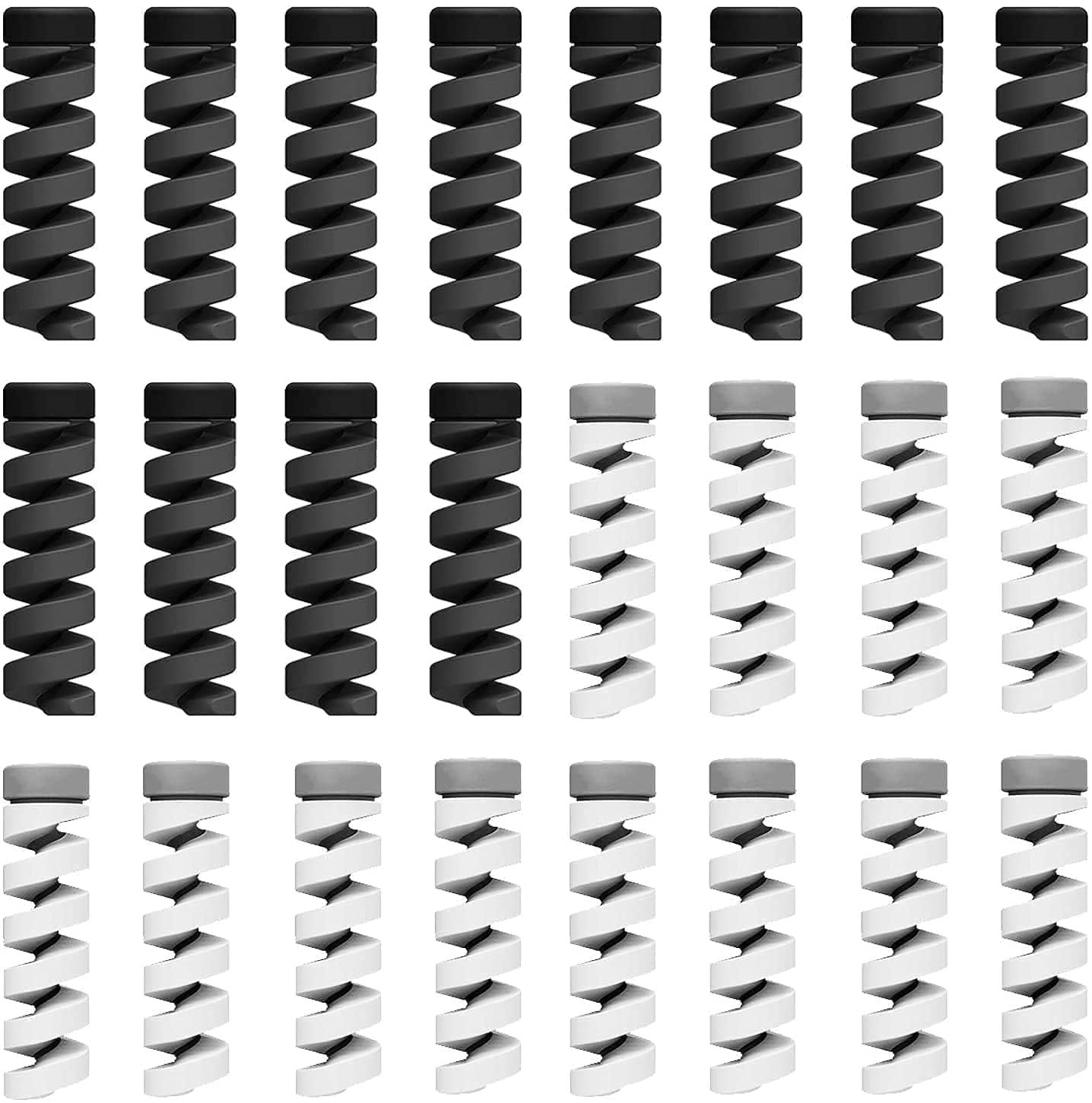 Sounce 25 Pcs Spiral Cable Protectors & Wire Protectors Spring Wire for All Wired Accessories for USB Charger, Data Cable, Headphones, MacBook, Laptop, Elastic Cord Saver (Black & Grey)