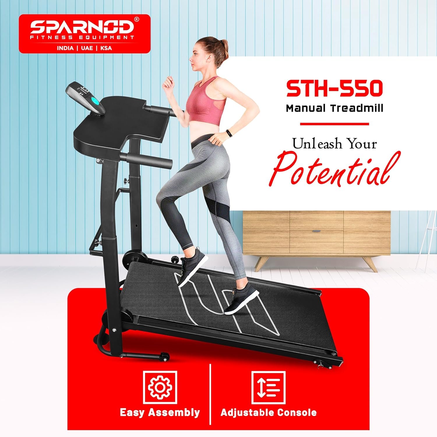 Be the first to review “Sparnod Fitness STH-550 Manual Foldable Treadmill for Home Use, Your Pace Your Power Real-Time Tracking 5-Layer Anti-Skid Belt 100×35 cm Deck Shock Absorber Manual Incline Mobile Holder Compact Design”