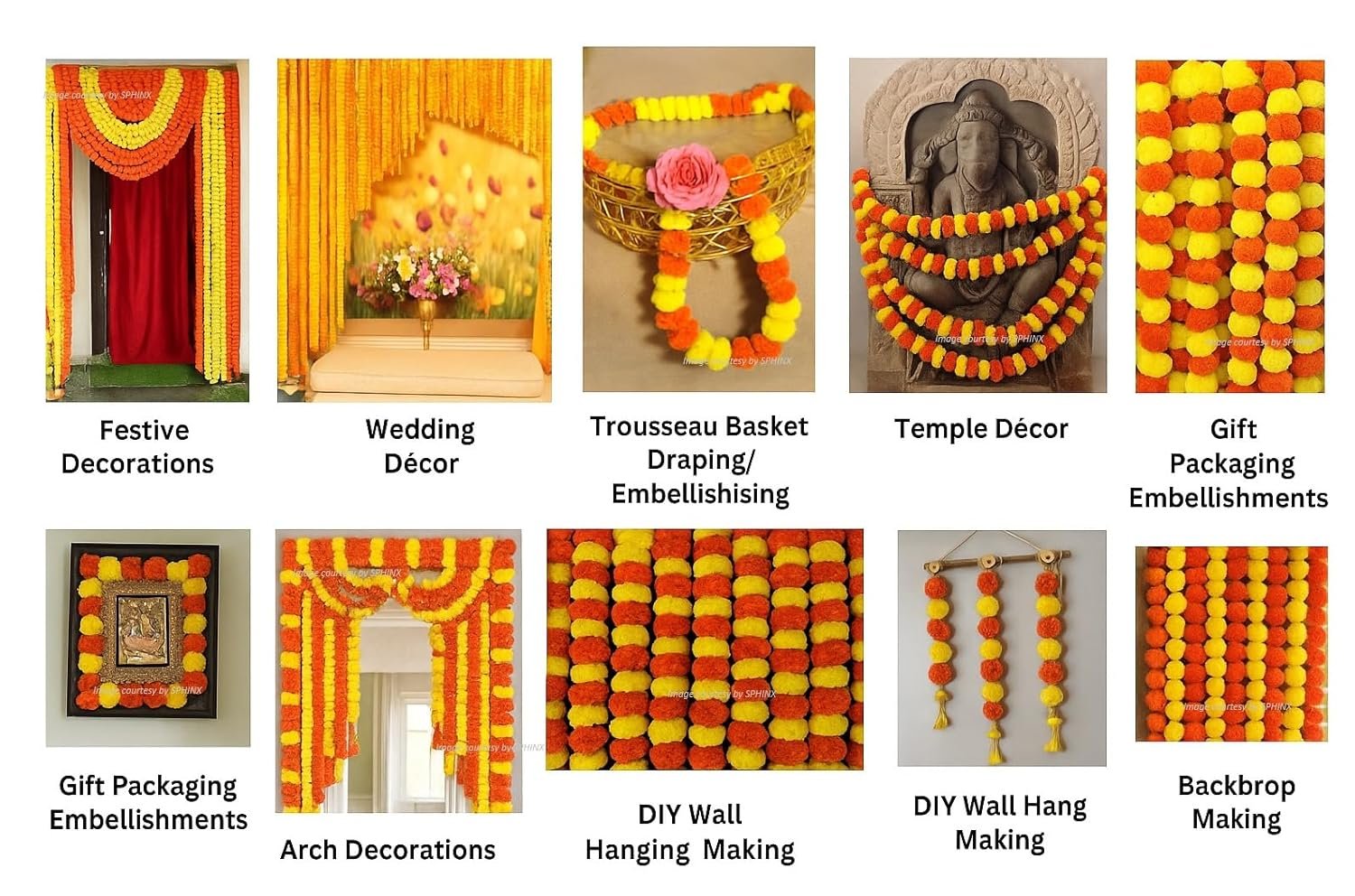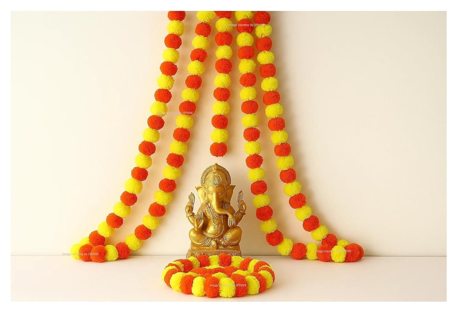SPHINX Artificial Marigold Flower Garlands–Fluffy Marigold Strings for Diwali,Pooja,Wedding,Festival,Housewarming,Home,Mandir,Wall,Door,Home Decor–Reusable Trousseau Gift – Yellow &Dark Orange,5 Pcs
