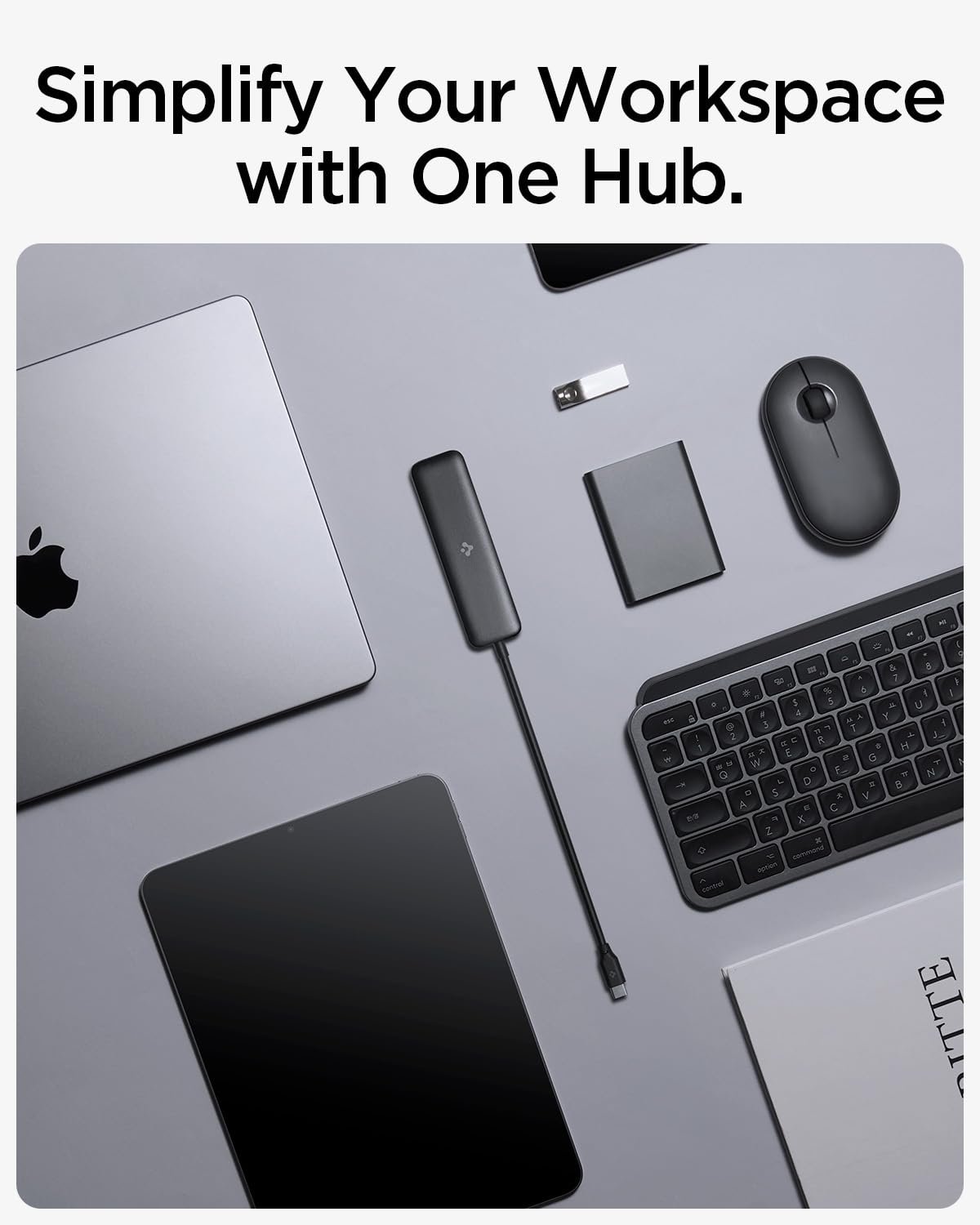 Spigen 9-in-1 Type-C Hub with Multi Port (100W PD 3.0 4K 30Hz HDMI 5Gbps USB-C, 2 x USB-A Data Ethernet Port, Audio Jack, microSD/SD Card Reader for MacBook Pro/Air M1 M2 PlayStation) – Dark Silver