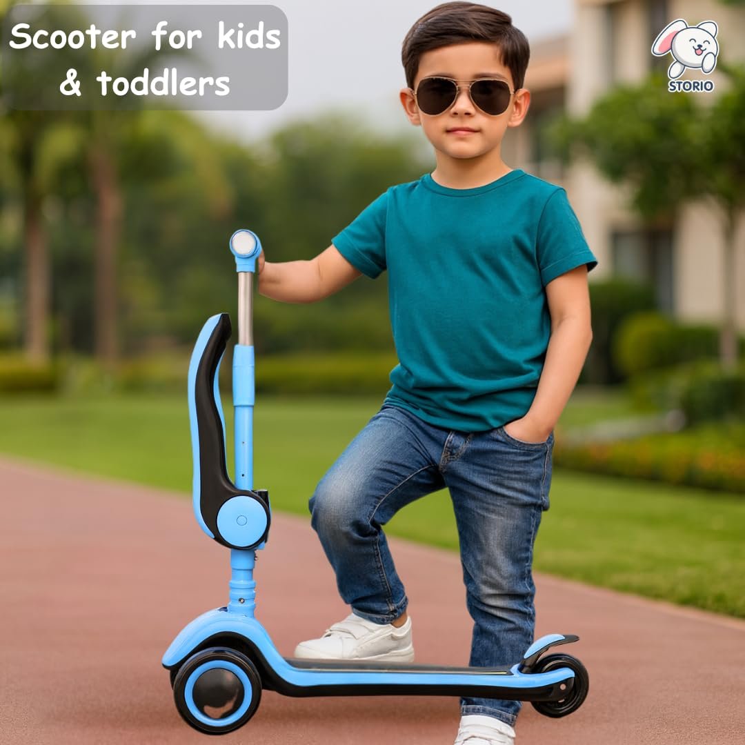 Be the first to review “Storio Drago 2-in-1 Skate Scooter for Kids, 3 Wheel Foldable Kids Runner with Handle, Stand and Seat Functionality, LED PU Wheels | for 3-10 Years – Blue”