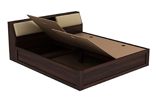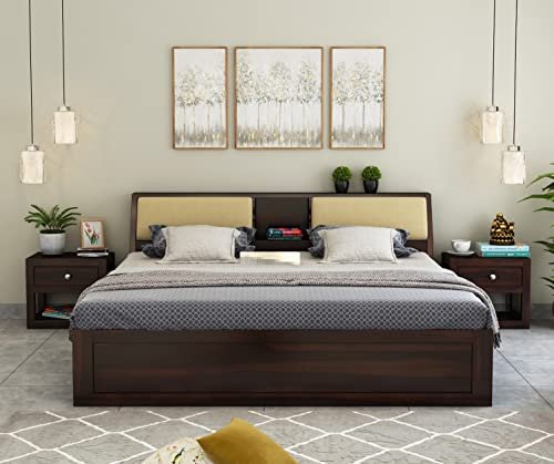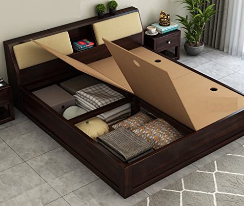STRATA FURNITURE Sheesham Wood Queen Size Bed with Box Storage Wooden Double Bed Cot Bed Furniture for Bedroom Living Room Home – (Walnut Finish)
