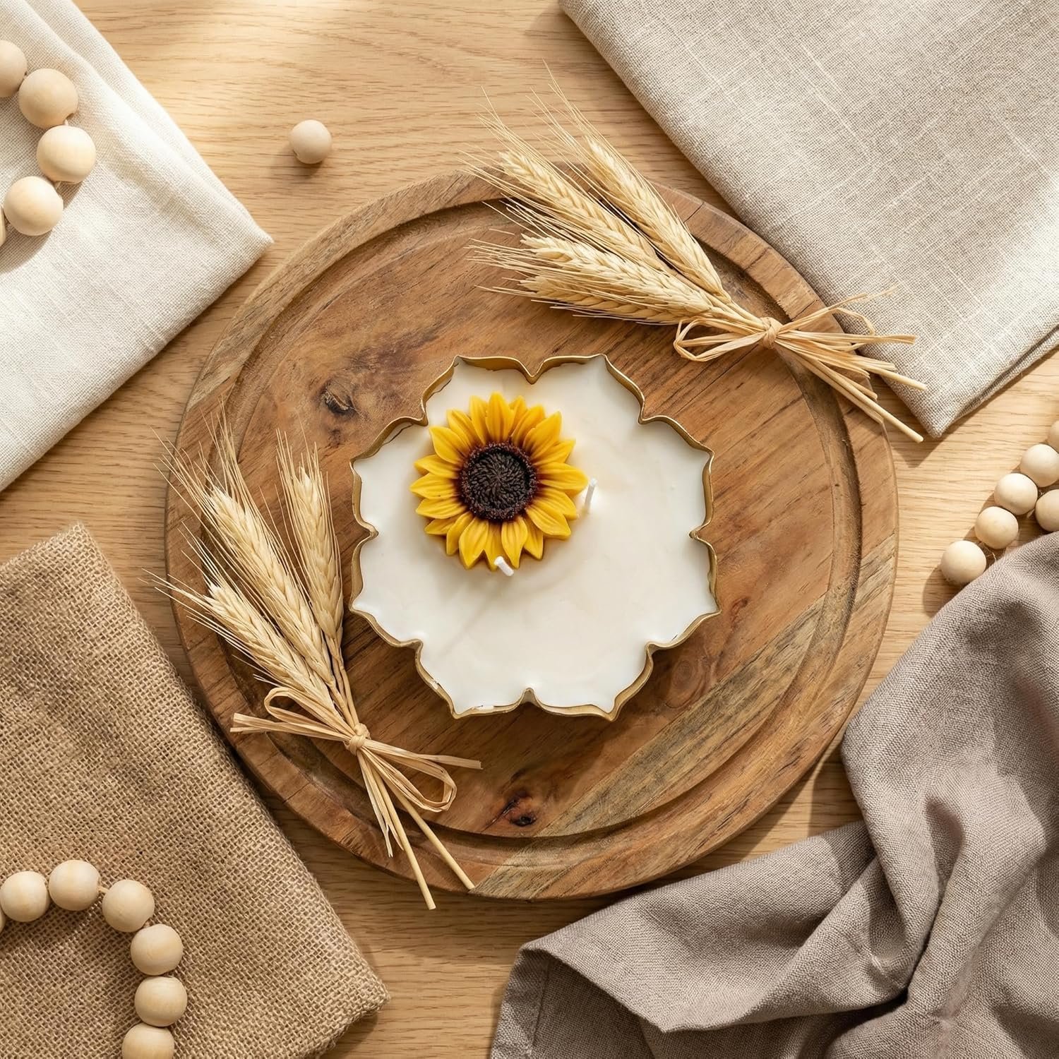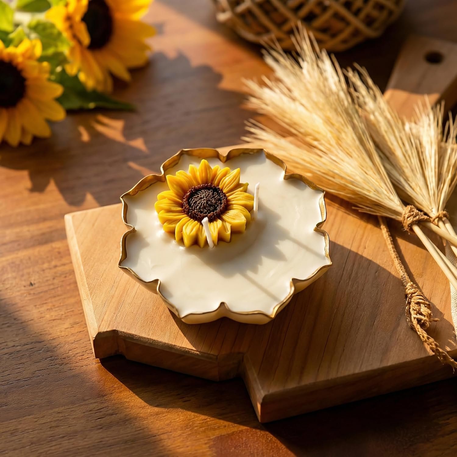 Sunflower Urli Candle with Vanilla Jasmine Fragrance | Handcrafted Floral Wax Candle in Metal Urli | Aesthetic Home Décor, Festive & Gifting Candle
