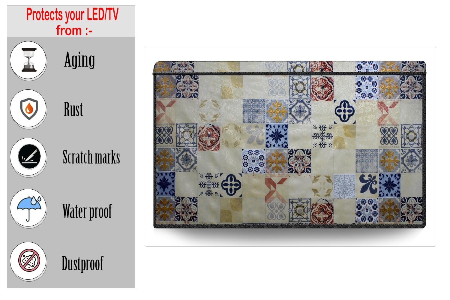 The Furnishing Tree Waterproof & Dustproof PVC LED/LCD/Monitor TV Cover Suitable for All Models of 40 Inch TV, Dimensions of The Cover WxHxD in Inches: (37×22.5×3), Mosaic Pattern Yellow