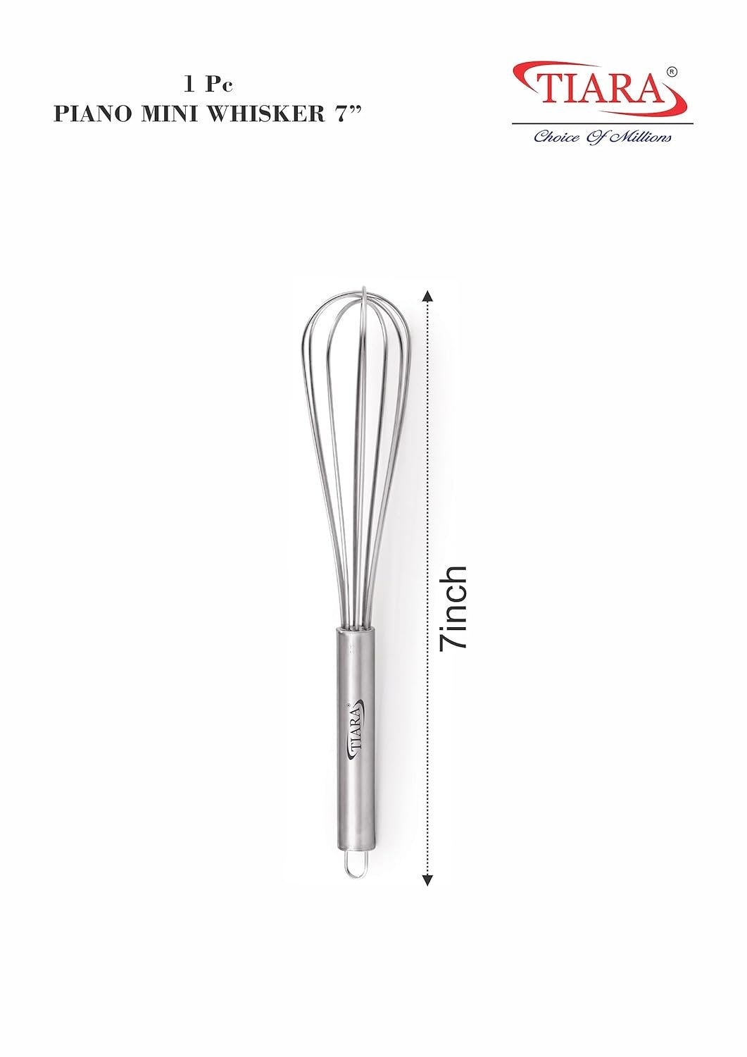 TIARA 1Pc Piano 7inch Mini Whisker Stainless Steel for Blending, Whisking, Beating and Stirring, Enhanced Version Balloon Wire Whisk (7inch Mini Whisker)