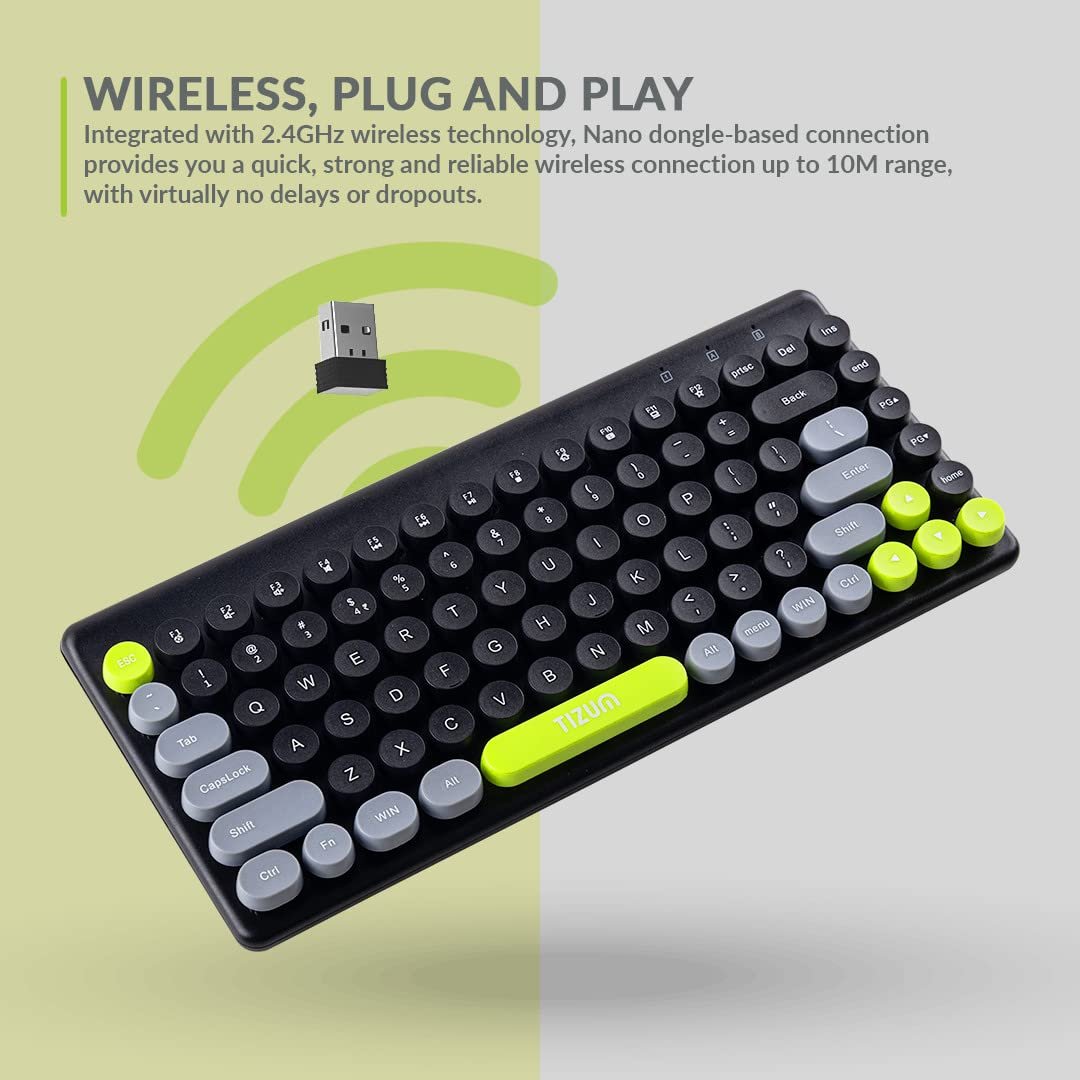 Tizum 2.4 GHz Retro Wireless Keyboard & Optical Mouse Combo with 2-in-1 Nano Receiver, Power Saving Auto-Sleep, Typewriter Inspired Round Keycaps Design, 86 Keys, 1000-DPI for MAC Windows iOS Android
