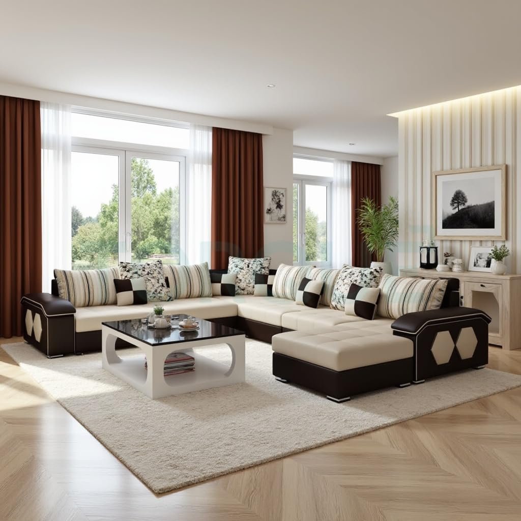 Be the first to review “Torque – Silvester 12 Seater Sofa Set for Living Room (Right Side, Cream & Brown) | Interchangeable U Shape Sectional Sofa with Puffy and Stool for Guest Room”