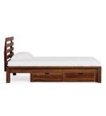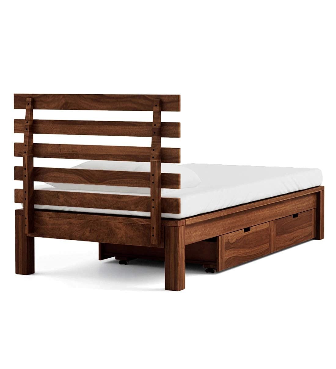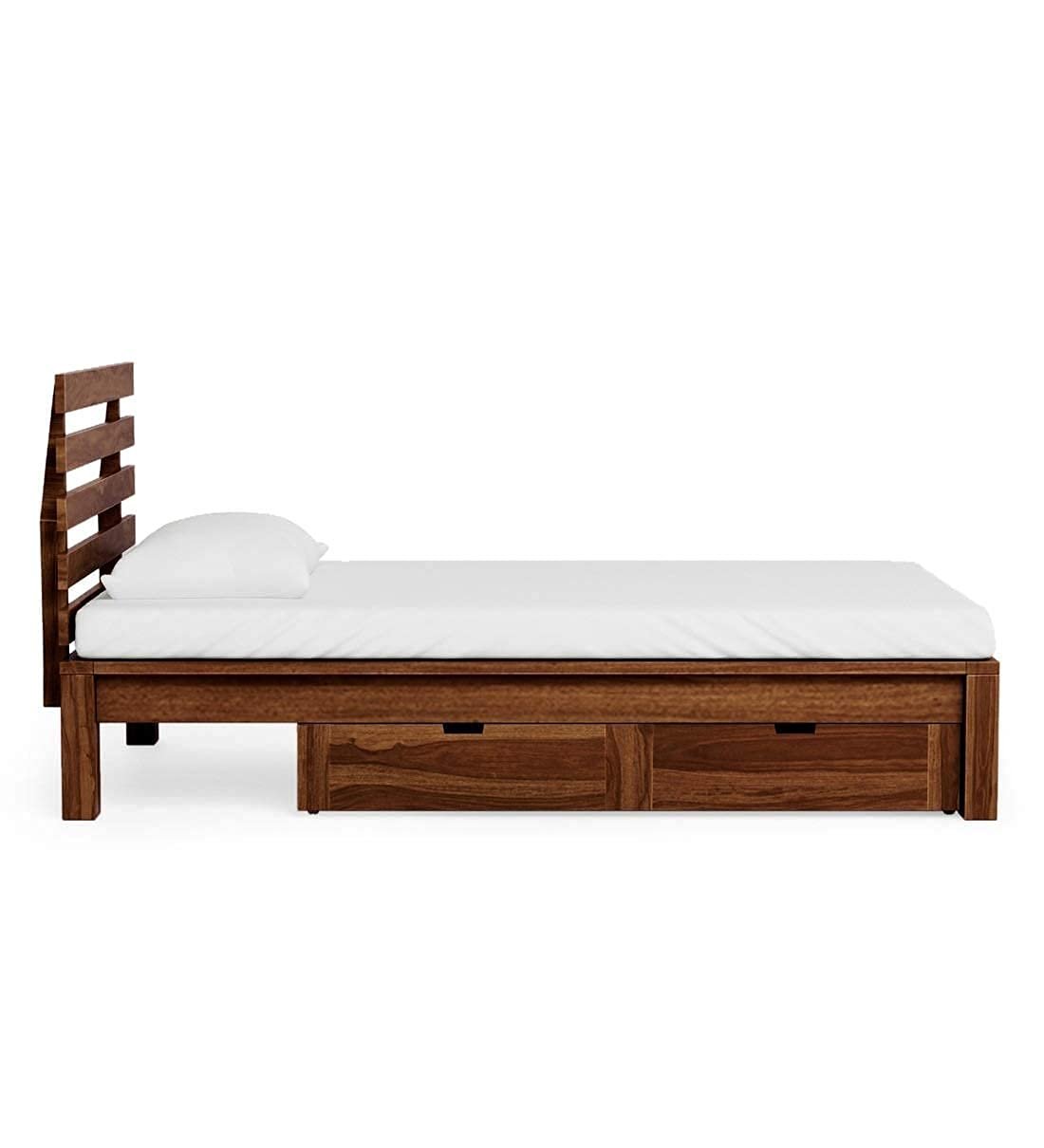 Twin Sheesham Wood Single Bed With Storage, Natural Brown, Contemporary Style, Maple Finish