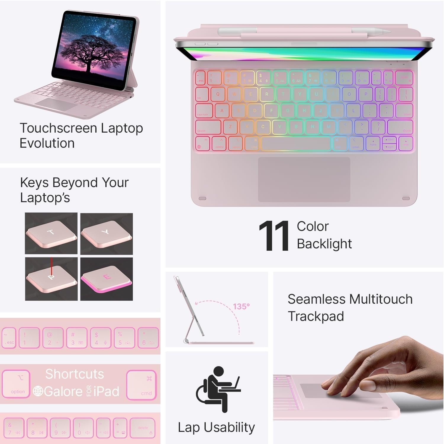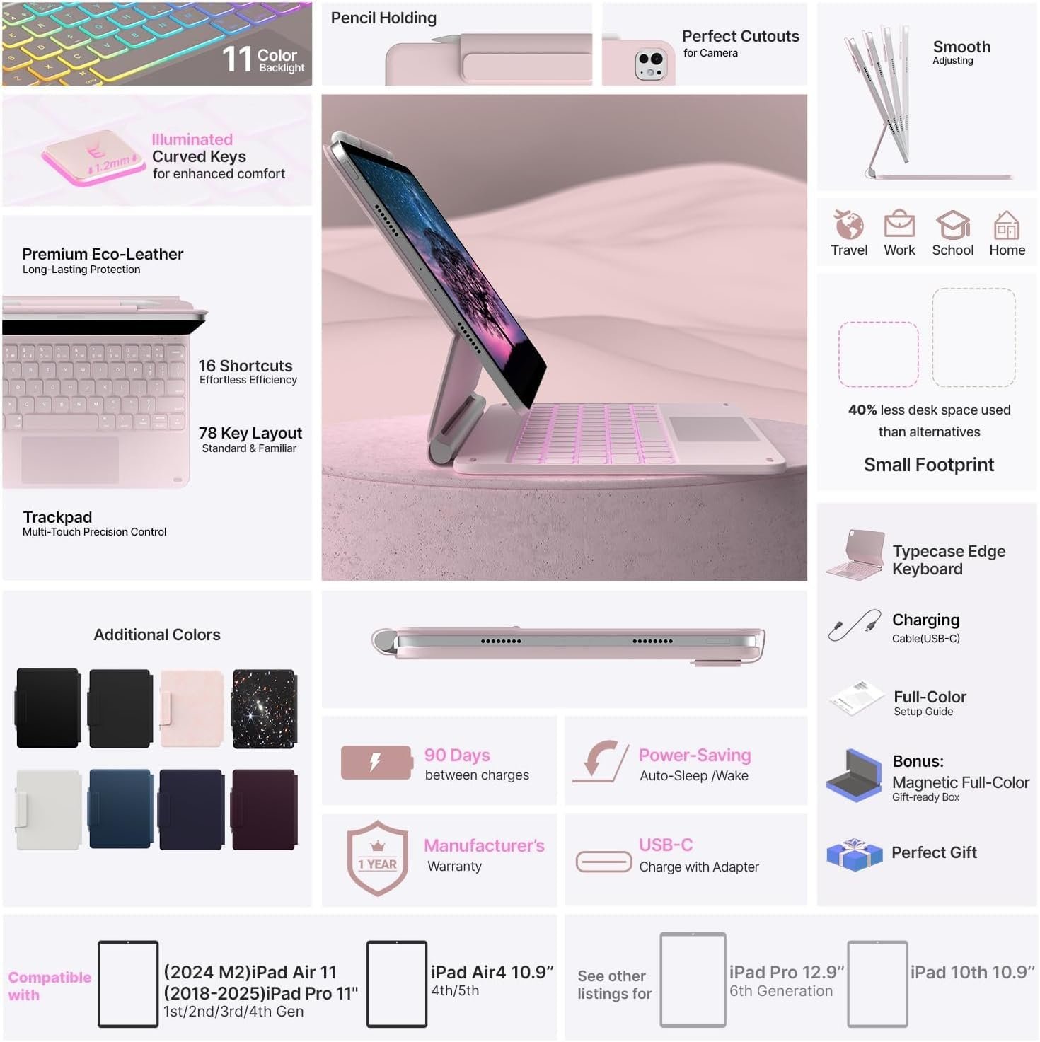 #typecase #Edge #Keyboard #iPad #Air #M3M2 #Air #5th4th #Pro #4th3rd2nd1st #11Color #BacklitMagic #Floating #CantileverPrecision #MultiTouch #TrackpadPink25 #fit #A1610th11M4