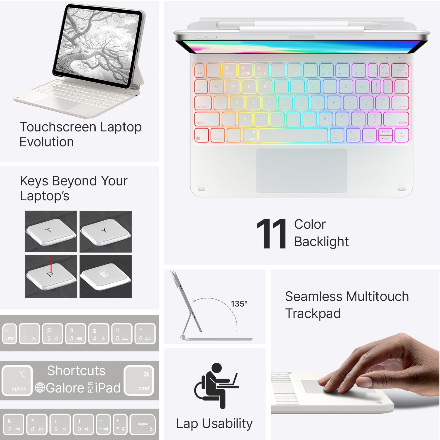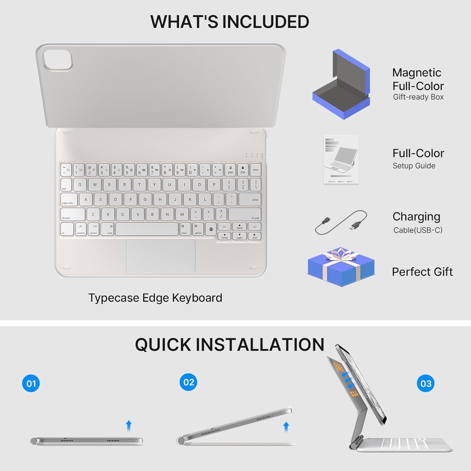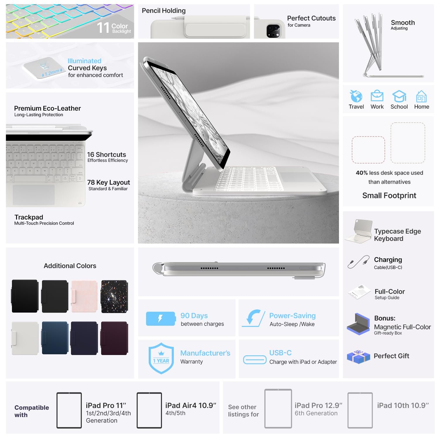 #typecase #Edge #Keyboard #iPad #Air #M3M2 #Air #5th4th #Pro #4th3rd2nd1st #11Colors #Backlit #Magic #Floating #Cantilever #Precision #MultiTouch #TrackpadWhite25 #fit #A1610th #11M4
