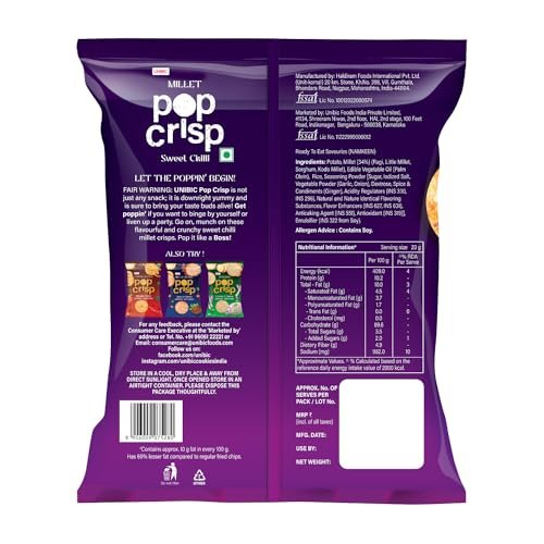 #UNIBIC #Pop #Crisp #Millet #Chips #Thai #Sweet #Chilli #Popped #Chips #Baked #Fried #Fat #Calorie #Healthy #Snacks #Grams