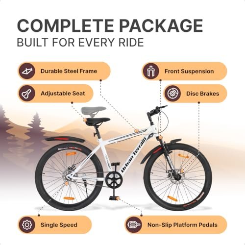 Urban Terrain Galaxy Pro Steel High Performance Mountain Cycles for Men 26T with Front Suspension & Dual Disc Brake MTB Bike Single Speed | Ideal for 13+ Years, Frame Size : 17 inch, (White)