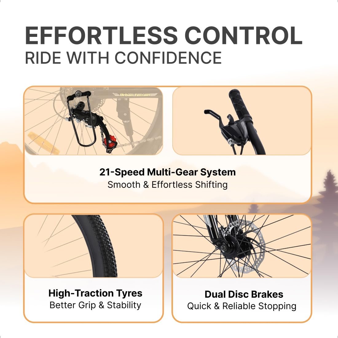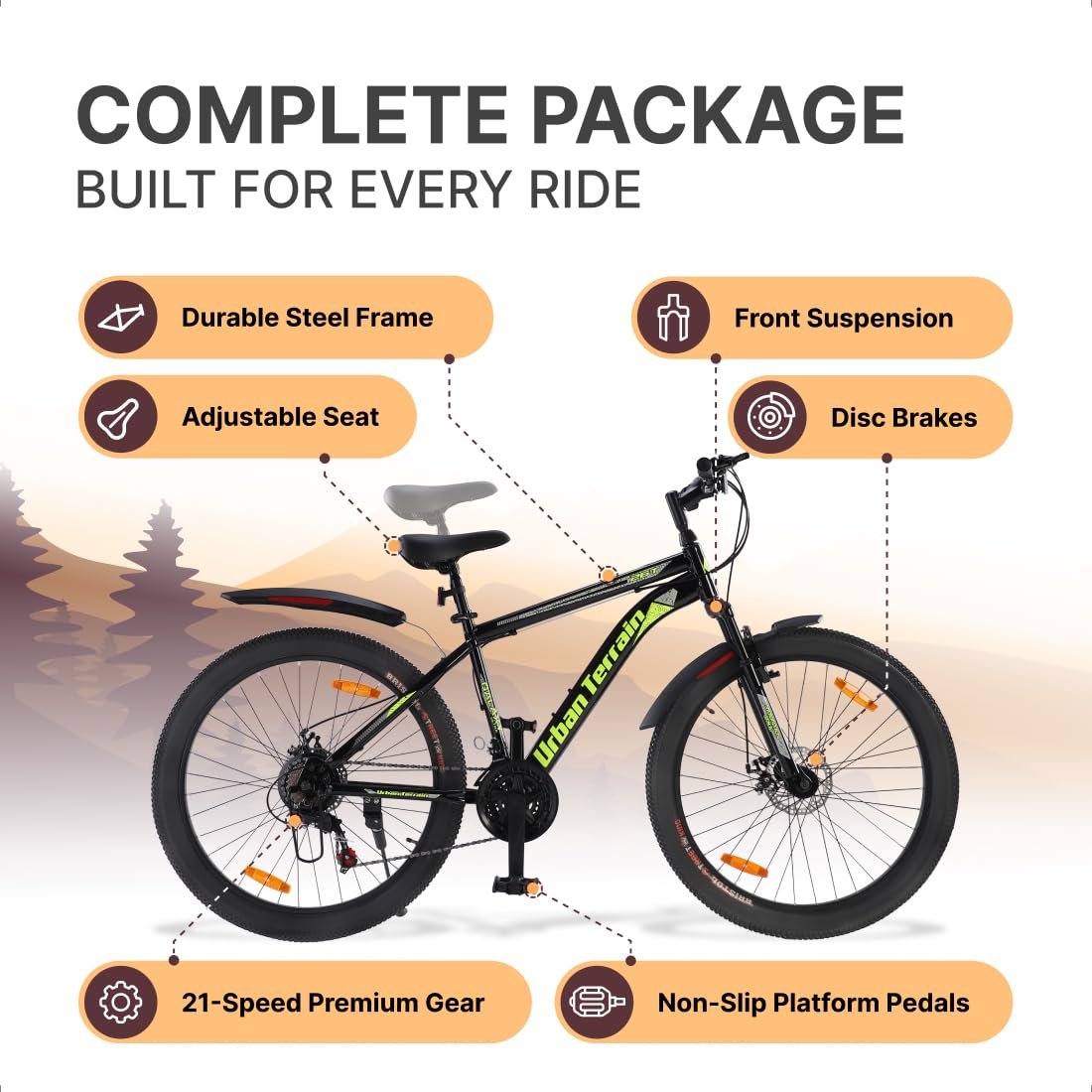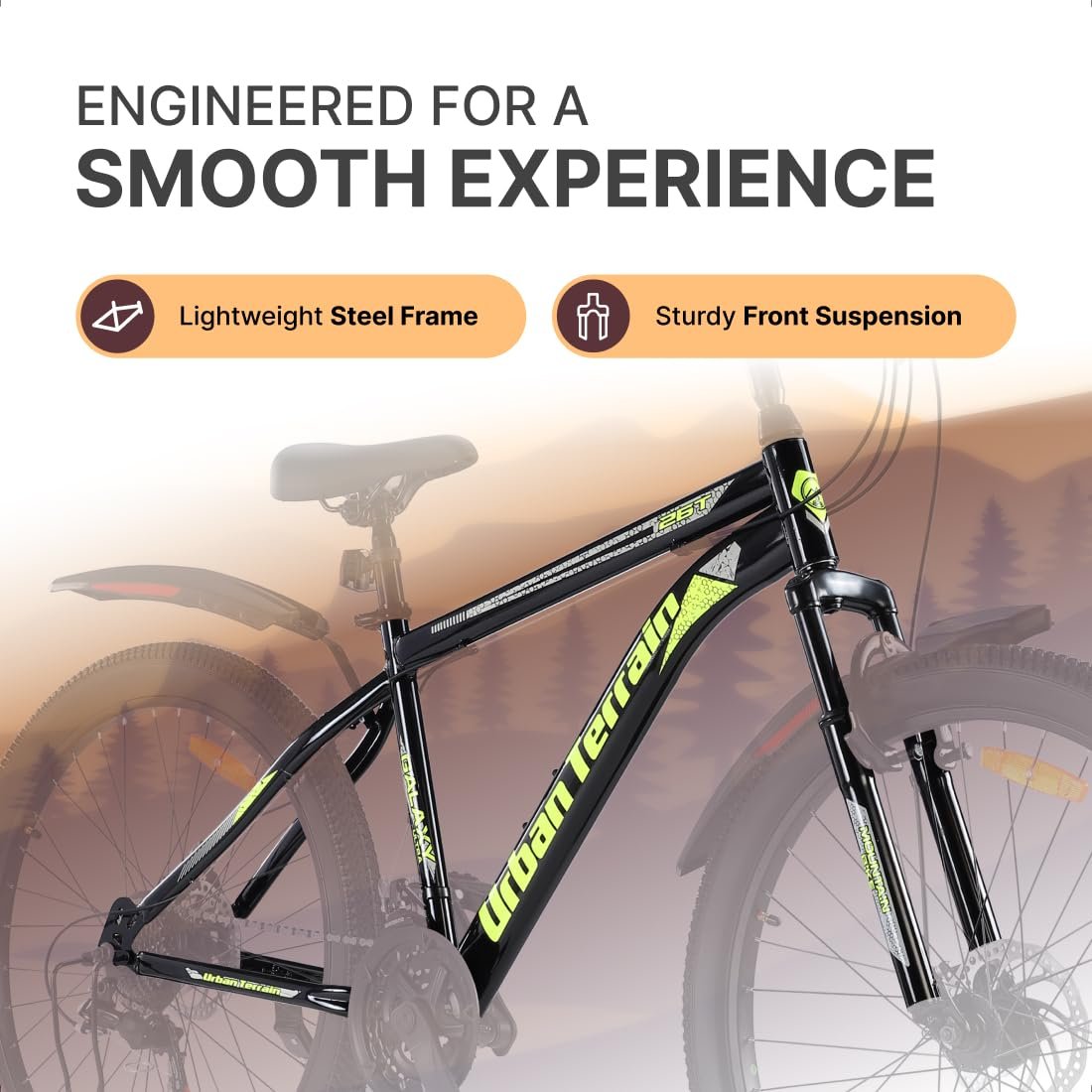 Be the first to review “Urban Terrain Galaxy Ultra Multispeed High Performance Mountain Cycles for Men with Front Suspension and Dual Disc Brake MTB Bike 26T (21 Speed, Green)”