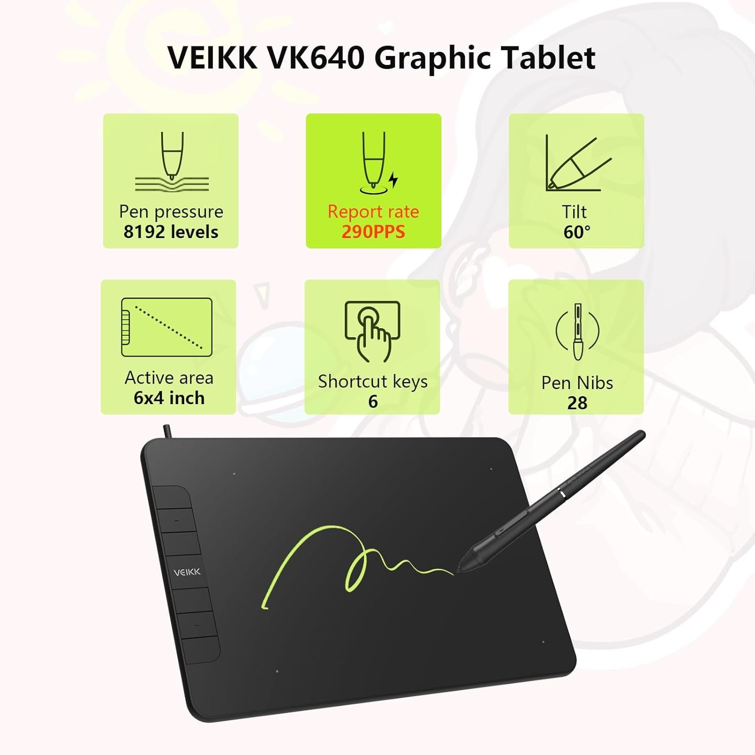 #VEIKK #VK640 #Drawing #Tablet #6×4 #inch #Portable #Pen #Tablet #Levels #BatteryFree #Stylus #Graphic #Tablet #Shortcuts #Keys #Android #Windows #mac #Linux #Support #Tilt #Function