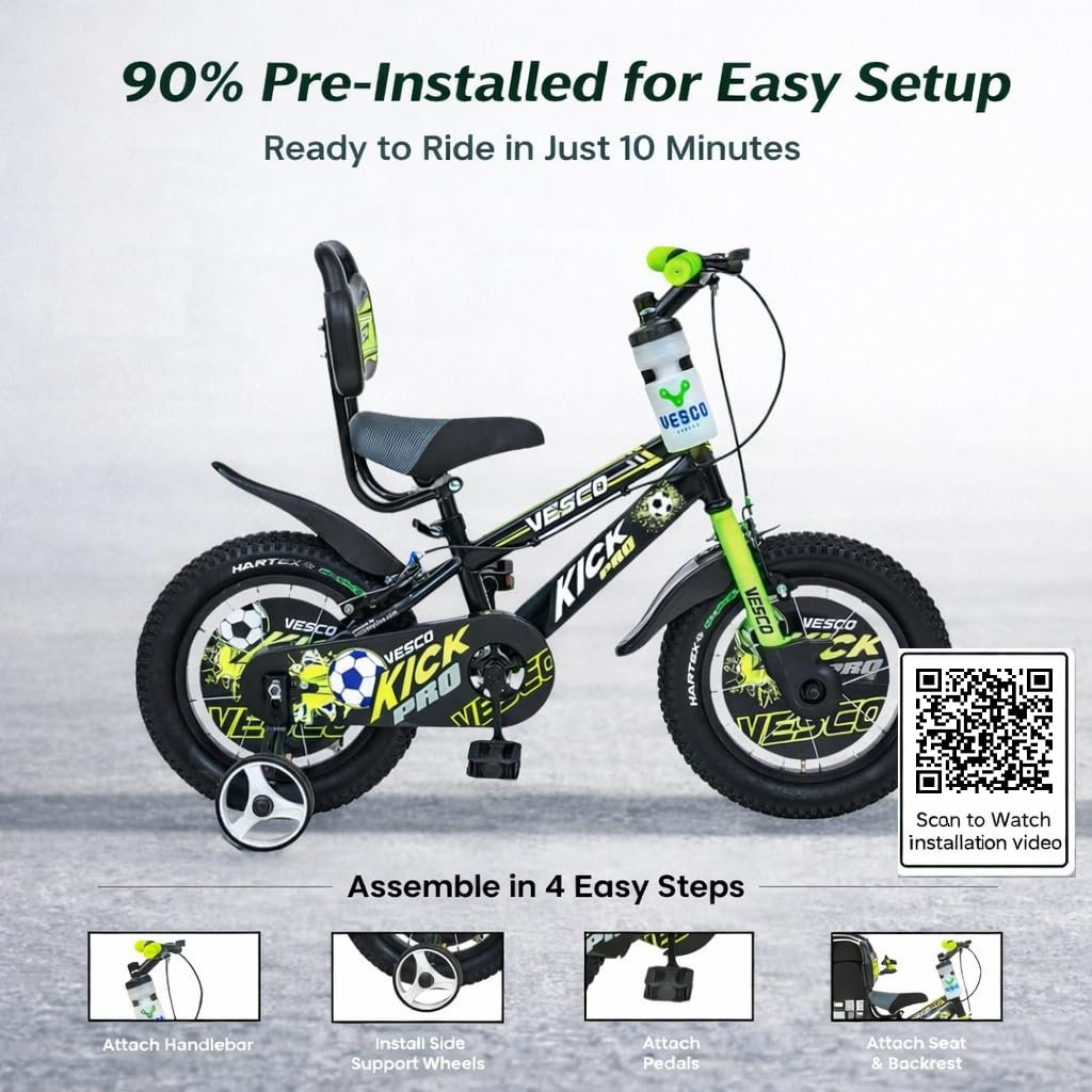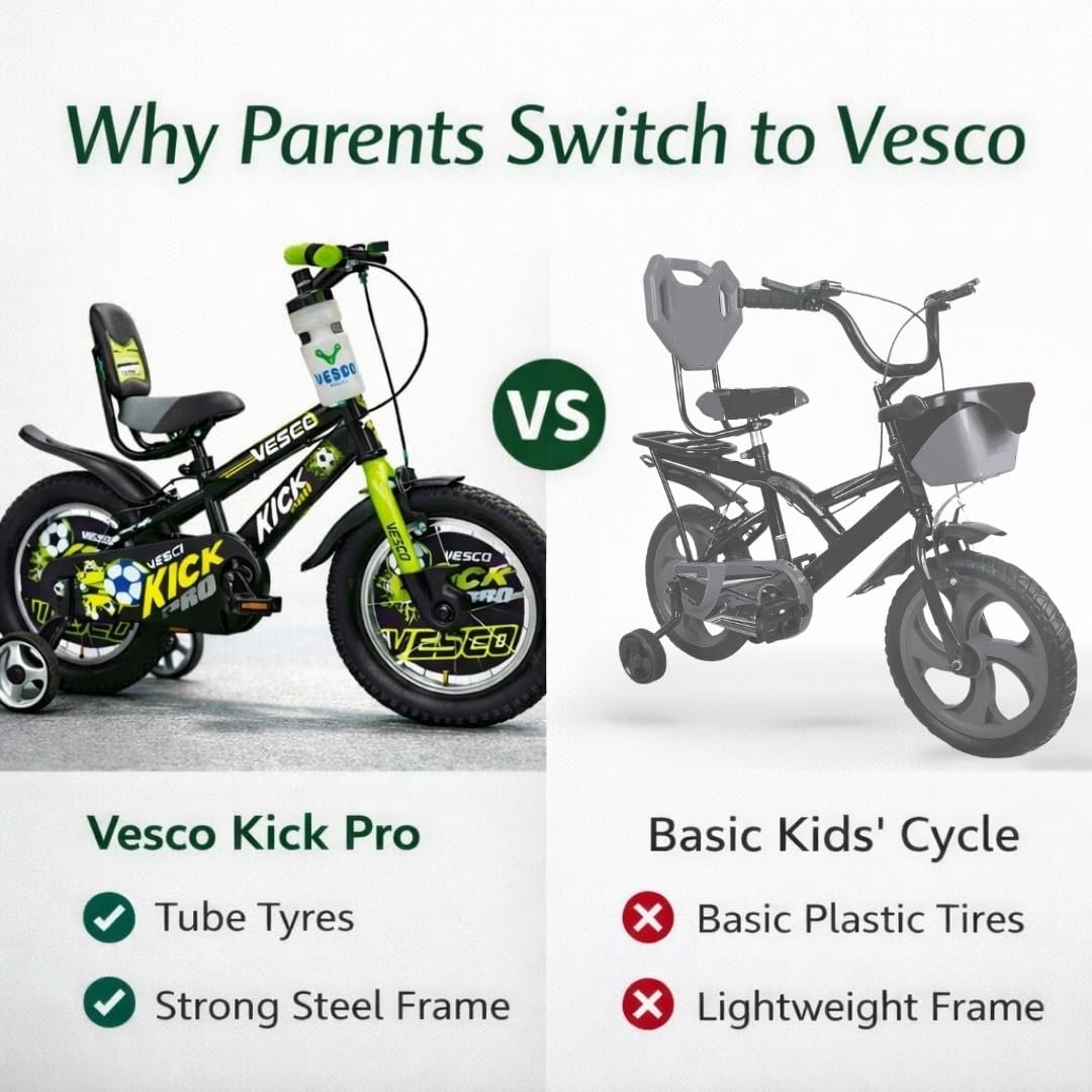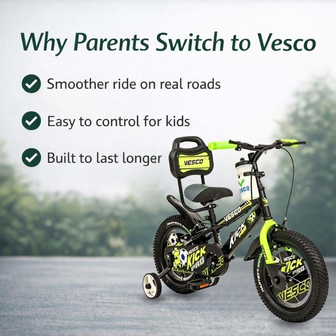Be the first to review “VESCO Kick Pro 14 T Kids Cycle with Balance Wheel & Back Rest Seat/Water Bottle | Rigid Fork, Frame 9 Inch | Ideal for 3 to 5 Years Boys & Girls (Green)”
