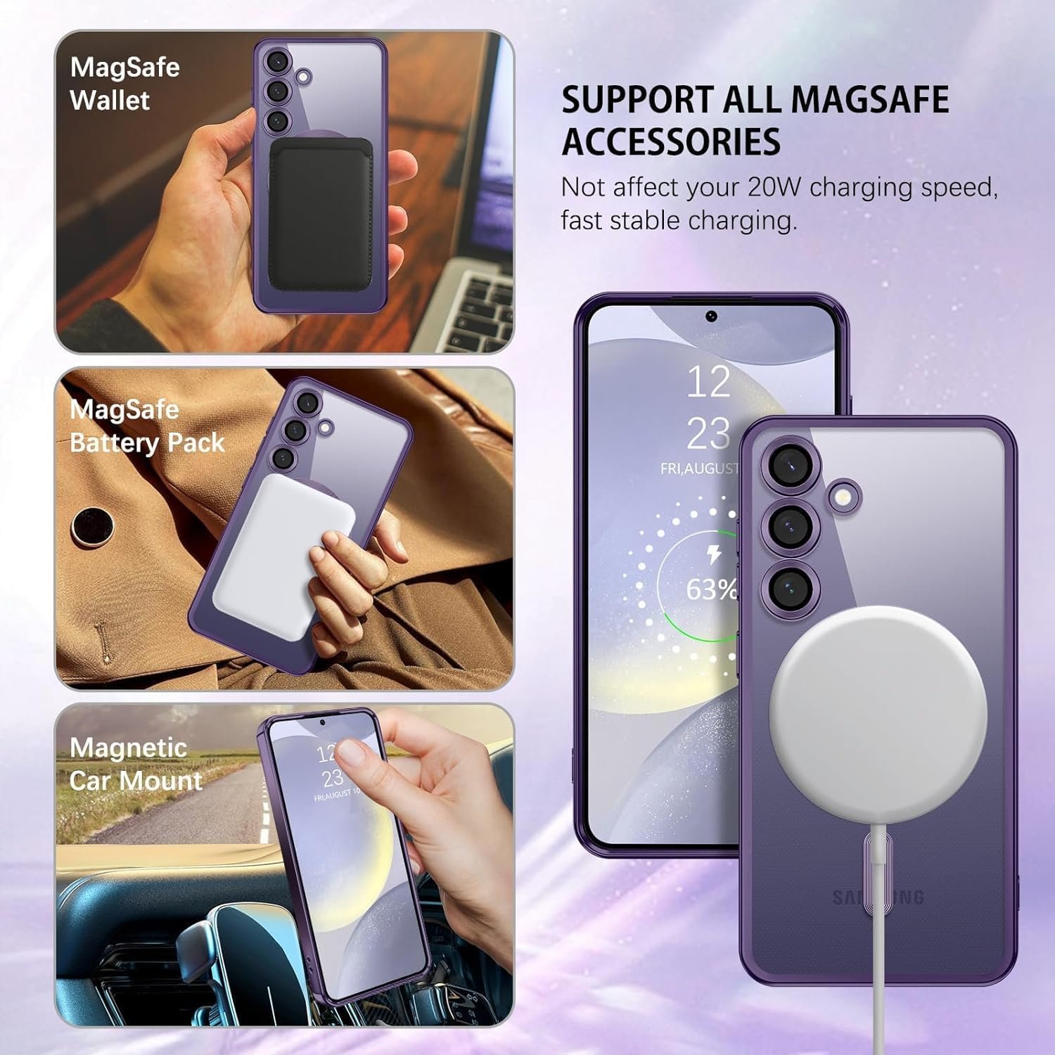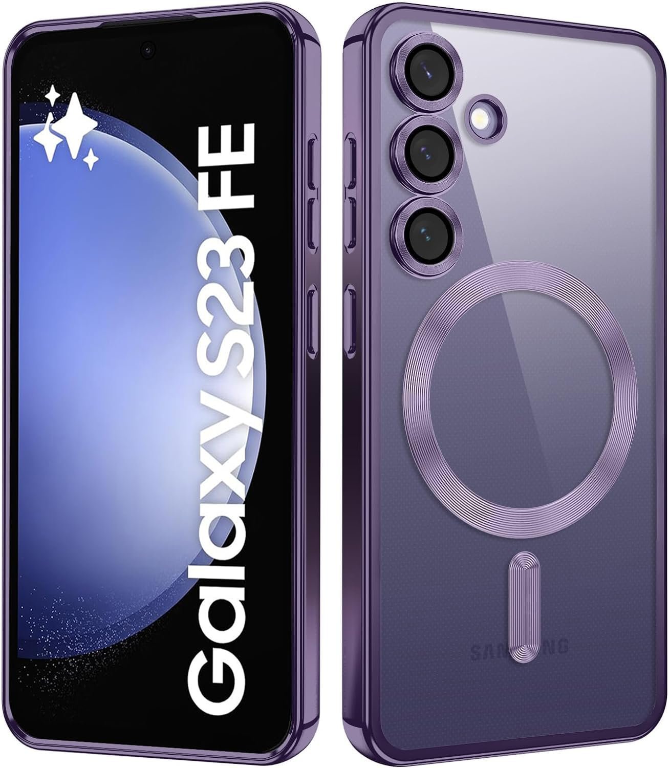 VONZEE Clear Logo Electroplating Transparent Case for Samsung Galaxy S23 FE 5G, Magnetic Plating [Support for MagSafe Charger] TPU Cover, Individual Camera Protection for Each Lens- Deep Purple
