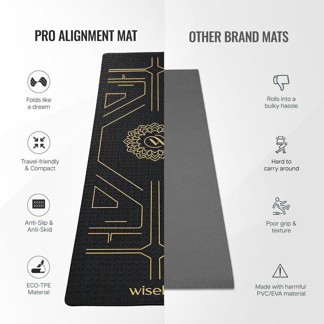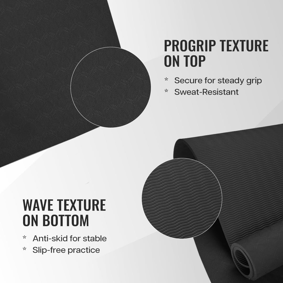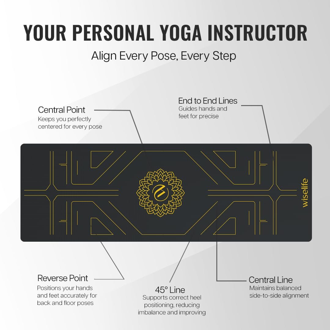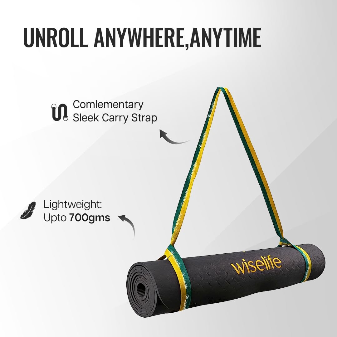 Wiselife True Alignment Yoga Mat + Sleek Yoga Strap For Men And Women | Probalance Eco Tpe Material 6MM | Extra Thick Extra Long Extra Wide | Charcoal Black