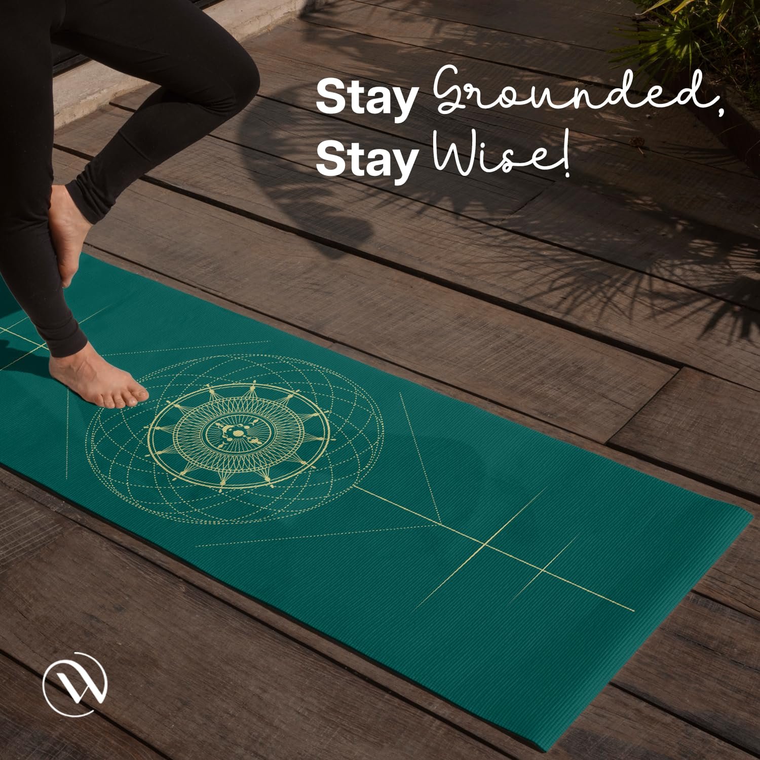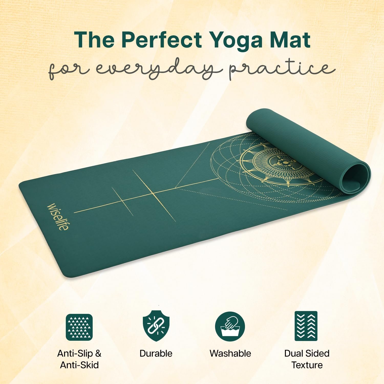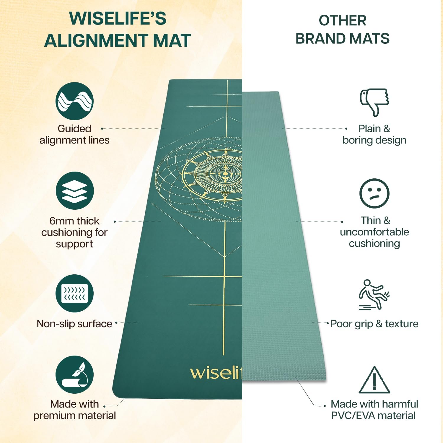 WiseLife True Body Alignment Yoga Mat + Sleek Yoga Strap for Men and Women | Non-Slip Textured Extra Wide & Thick | Pro Balance ECO TPE Exercise Mat For Home, Pilates, Gym & Fitness (6mm, Sage Green)
