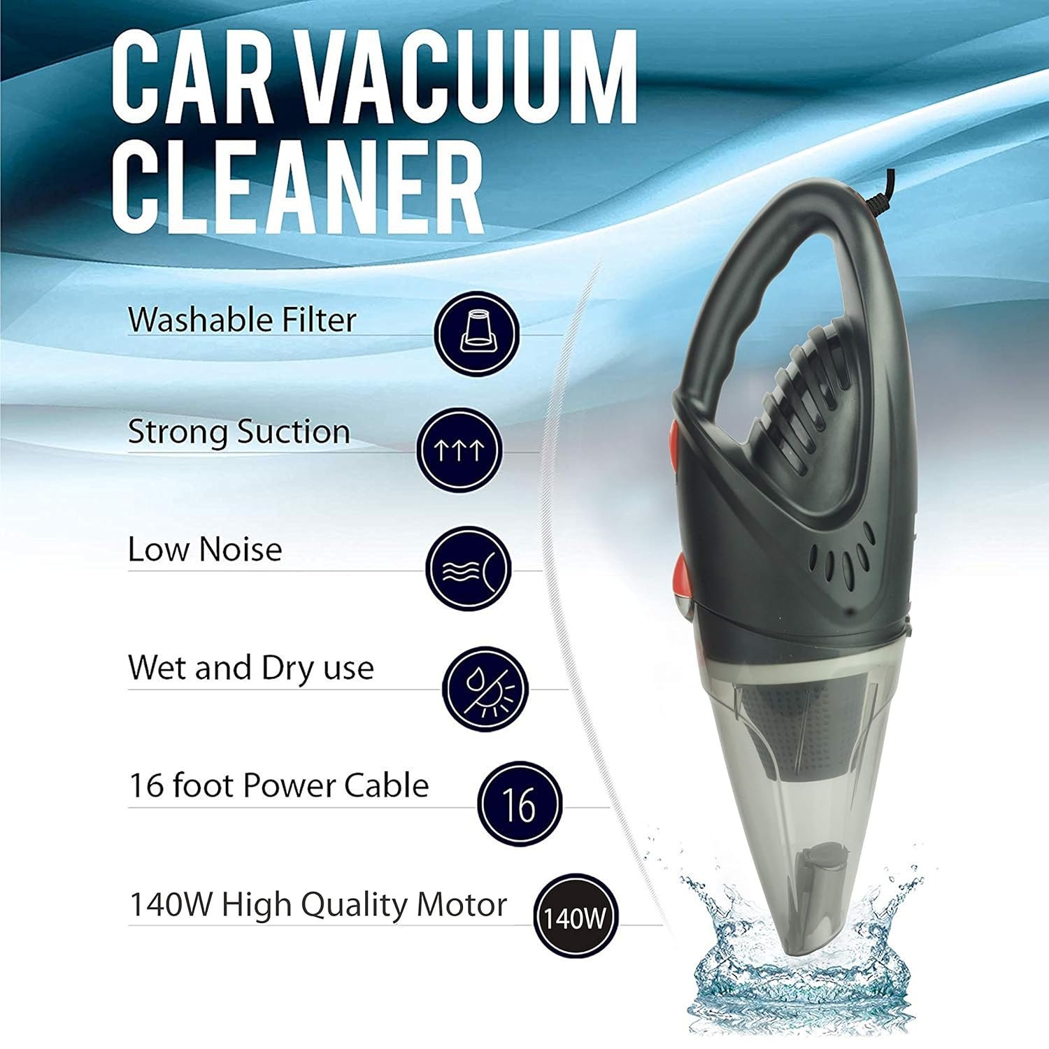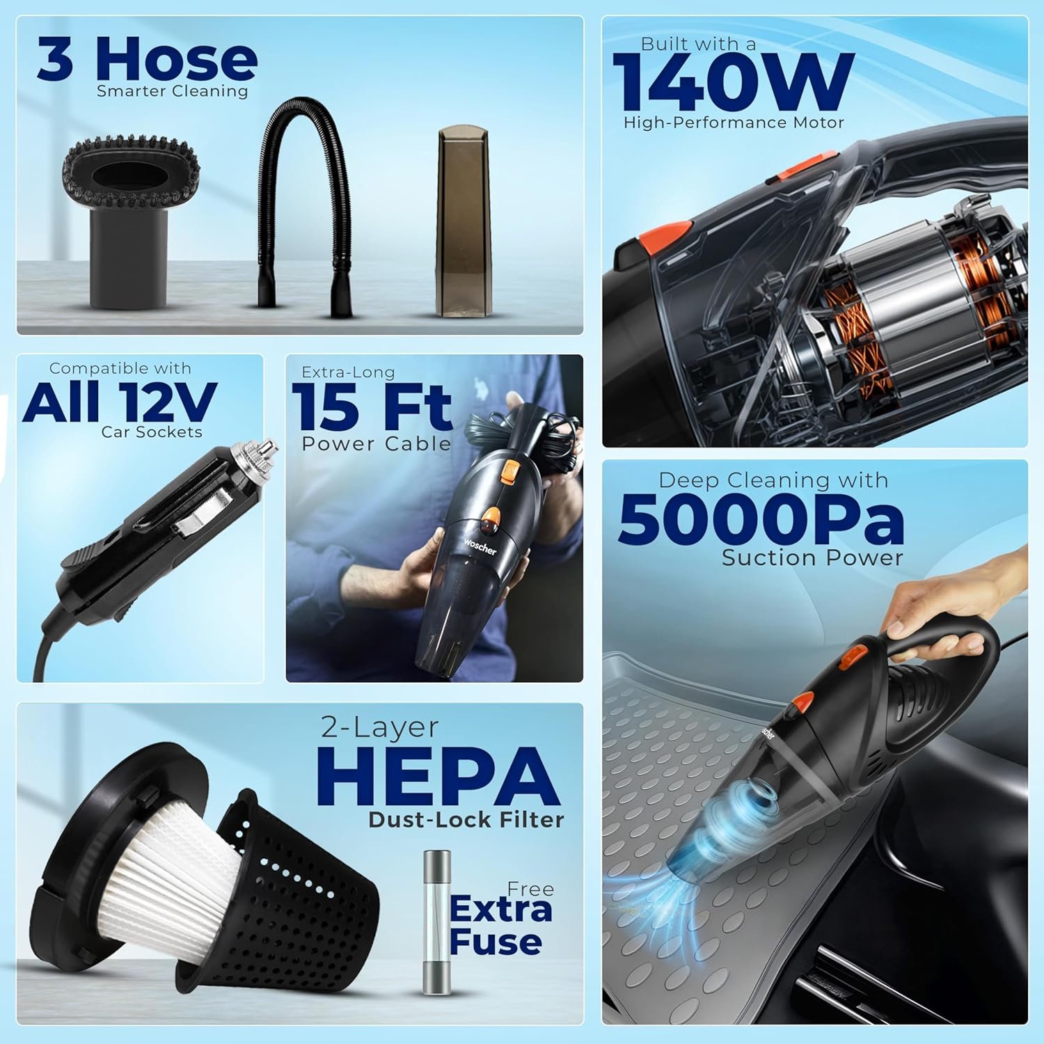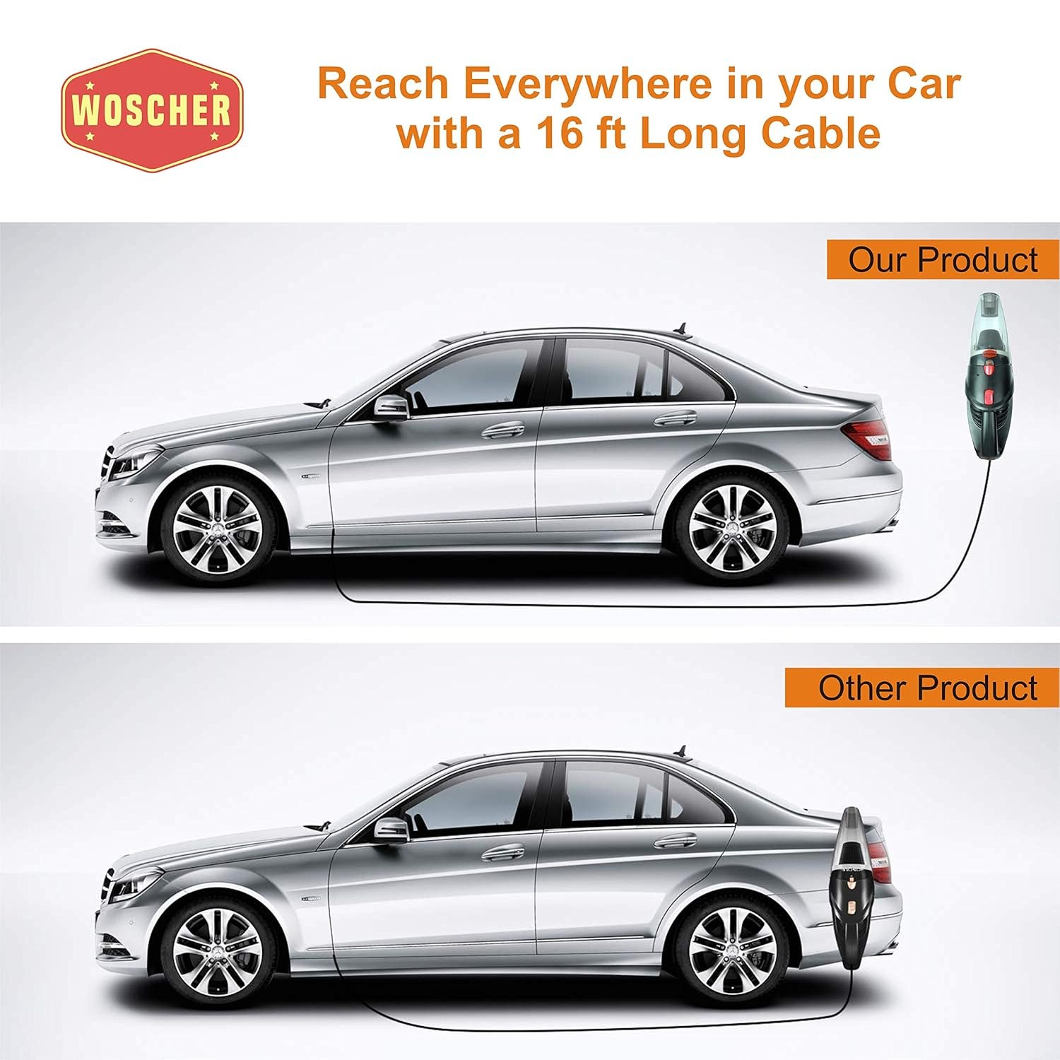 WOSCHER AutoVac Pro High Power Auto Car Vacuum Cleaner for Deep Cleaning, Hand Held Portable Car Vacuum with DC 12V, 140W Vacuum Motor & Powerful Suction 5000PA, Black