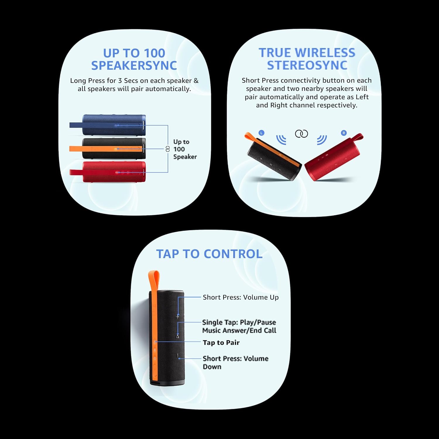 ZEBRONICS Pixie Portable Speaker, 5 Watts, Supports Bluetooth, TWS Function, mSD, Compact Design, Call Function, Carry Loop, Upto 7h Backup (Dark Blue)