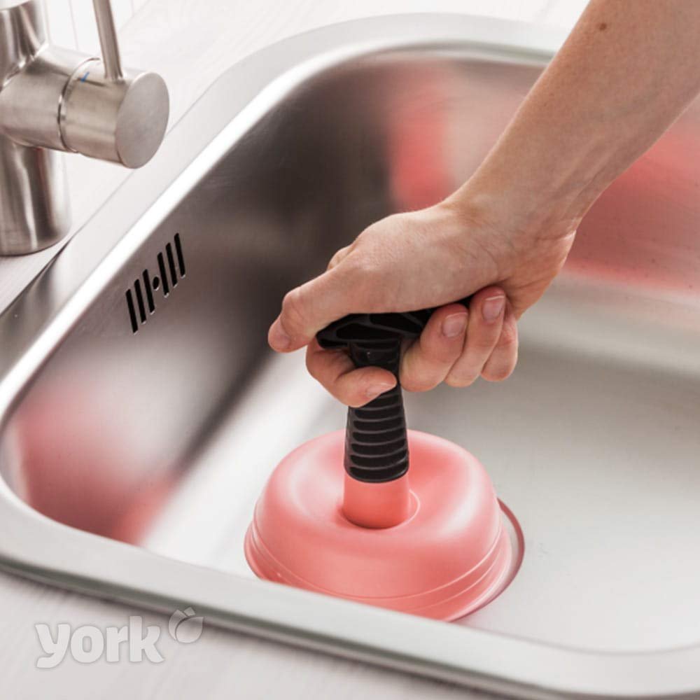 YORK Powerful Sink Pipe Plunger with Plastic Holder, Bathroom & Kitchen Basin Drain Cleaner for Clogged Sewers