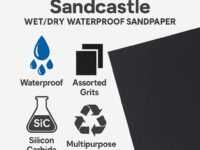 Sandcastle Wet/Dry Waterproof Sandpaper – 16 Sheets Assorted Grit (150/220/320/400/800/1200/1500/2000) | Silicon Carbide Abrasive Paper for Wood, Metal, Auto Body, Walls & Polishing – Black, 9×11 Inch
